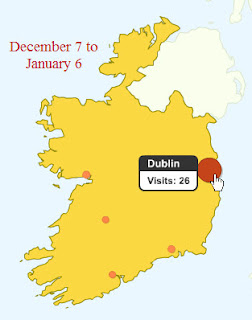 I get to travel to Dublin to do some work over the next couple weeks. Using Google Analytics I see that I get between 30-40 visits to the blog a month from Ireland with 20ish of them coming from Dublin. This past 30 days, as shown below, dropped by 10ish visits which I assume is because of the holidays and my lazy posting habits during that time.