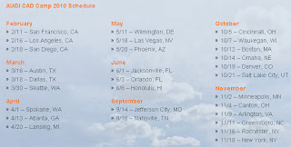 Here's a screen capture of the current schedule, hopefully coming to a city near you. If you've attended a CAD Camp in the past AUGI hopes you'll be able to come again. If you have not attended then AUGI hopes you'll be able to this year.