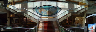 This next one is at the current hotel in Kuwait City. The Crowne Plaza has been restored to its former glory after the damage it suffered during the Iraq invasion. This stair was present then but it is in much better shape. Again the railing features a bottom edge detail that the current features don't support (okay...without fussing a bit).