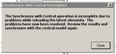 The more complicated the project, the more likely that it uses some sort of linked file strategy. If so then it is pretty likely that Revit will fail to complete a Synchronize with Central (SwC) the first time you try, thus the message.