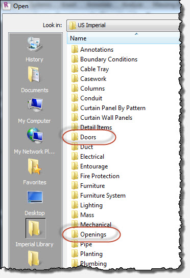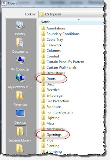 Following on yesterday's post regarding Doors and Openings, Daniel Stine wrote to mention that the opening families that we used to find in the door folder along with other doors are now in a new folder called Openings.
