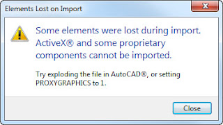 When you try to import AutoCAD data you might have seen this series of messages before? First we get a complaint about Elements lost during import.