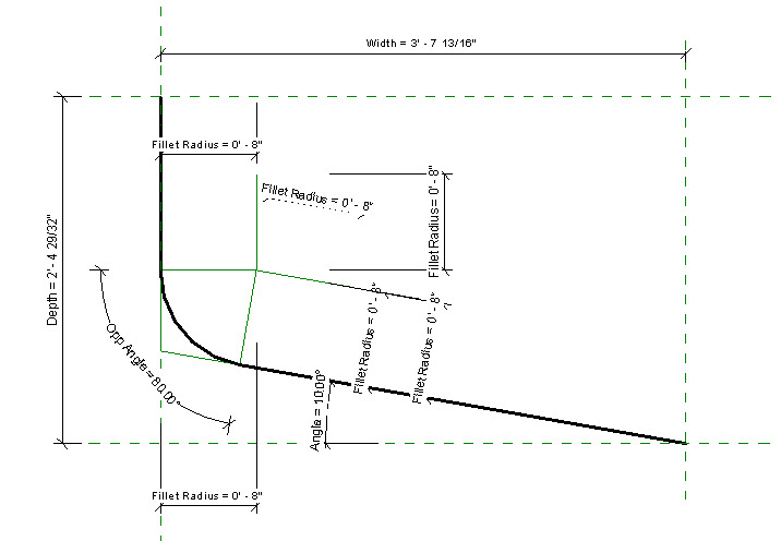 This image is the overview of what parameters are desired: Length, Depth, Fillet Radius and Angle.