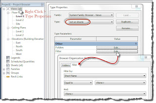 If my role is documentation I can focus on the sheets part of the browser. If I put on my modeler hat then I can move up to the views part of the browser instead. The "not on sheets" browser configuration will strip out all those documentation views for me.