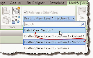 For many years now we've been able to use a concept called Reference Other View when we create sections, elevations, callouts and drafting views. We used to take advantage of it via the Options Bar, while creating those kinds of views. It's been moved up to the ribbon which seems to be another nail in the coffin for the poor old Options Bar, we knew thee well...