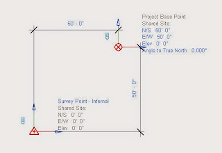- The Project Base Point and Survey Point start by marking their own origins, at same location in stock templates but they are NOT the same coordinate systems.