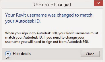 Regarding using worksets, when we are using Revit 2014 we can sign in to our A360 account and it leaves our current Revit username alone. When we are using Revit 2015 logging into A360 will attempt to change our username to match our A360 username. If we are already working in a Local File with a different username we'll get this warning message and signing in to A360 fails.