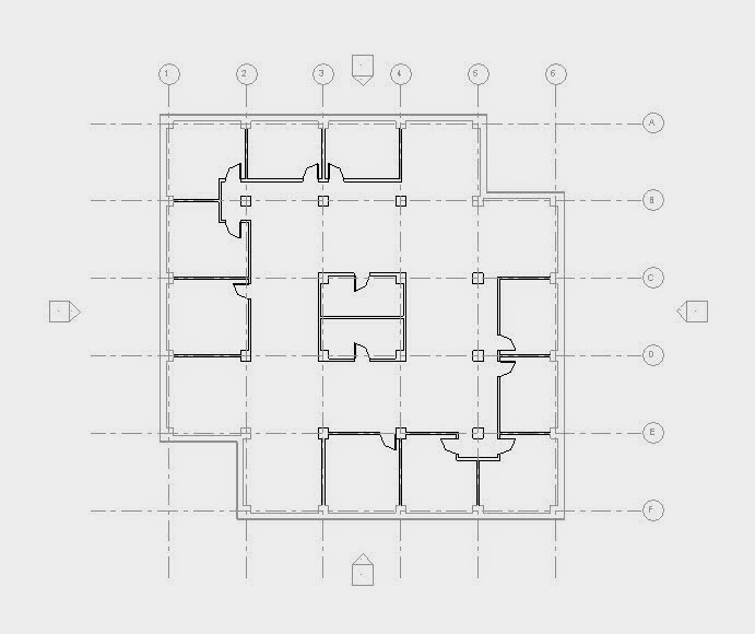 Let's say I need to start working on the interior partitions next. If I click to enable Gray Inactive Worksets it becomes more obvious that the exterior walls are still my focus.