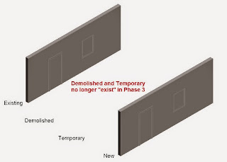 That poses a problem because the earlier work (demolition and temporary) will not be displayed anymore because it is "gone" when you move forward in time to a view assigned to phase 3. This image is of a 3D view that is assigned to Phase 2 using Phase Filter Show All.