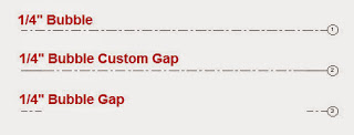 If we want to stop the grid from traveling all the way through a model we can use the 1/4" Bubble Gap type. The gap is created with the Center Segment parameter by using None instead of Continuous or Custom. Choosing Custom enables (turns on) three new parameters: Center Segment Weight, Center Segment Color and Center Segment Pattern (a Line Pattern).