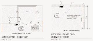 A friend some years ago sent me a PDF that showed a bunch (a couple shown above) of different equipment and device layout schemes he did to better understand how Revit arrives at a value for Circuit Length. What it shows is that Revit does nothing to factor in obstacles which force the wiring to go up or down or around the things that are more than likely going to increase the total circuit length.