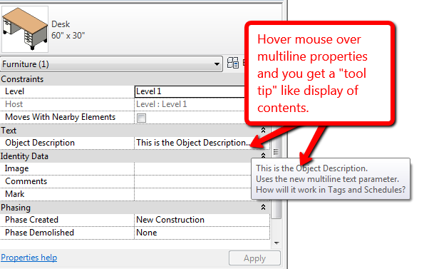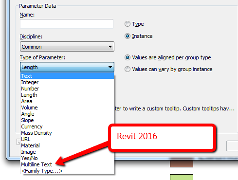 Revit 2016 - Multiline Text Parameter Type