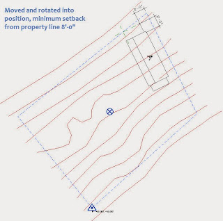 I think I'm ready to deal with Tiny House B now. It's really just another project file saved with a new name. I was too lazy to make another design. If this was a real project I wouldn't be able to get away with that. I decided that this house has to be no closer than 8'-0" to the North boundary but I've also made the North end of the house parallel to the boundary.