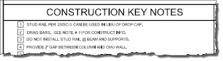 I find it interesting that I didn't find a definition readily available on the interwebs for what we do with and call keynotes. There were lots of trade specific sites but not the traditional dictionary or wiki version. Most refer to being the keynote speaker at an event or related to music.Regardless, for us it is a system to reduce clutter on drawings by placing symbols that either carry numbers or letters or both to identify different conditions that we should look to a separate place (key, like a map key to symbols) to read more information. Ideally it means we get drawings that are cleaner looking instead of the clutter of long descriptions nestled among the graphics that describes the building itself. It's also a way to help reduce the chances of making spelling errors or stating things differently because more than one person is usually involved in the process of completing drawings.