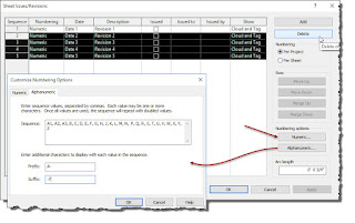 While you're checking this out in the Sheet Issues/Revisions dialog have a closer look at the new numbering and Alphanumeric options for Sequence, Prefix and Suffix as well as being able to use Alpha-Numeric sequences too.