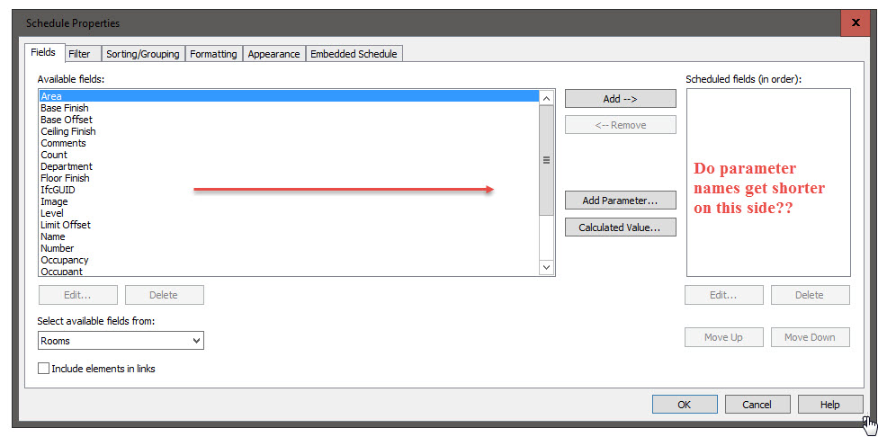 When we stretch the schedule properties dialog only the Available Fields list gets wider. The side dedicated to the parameters assigned to the schedule gets no love.