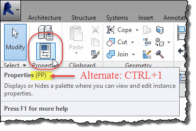 It is also available on the Modify ribbon tab > Properties panel > Properties.