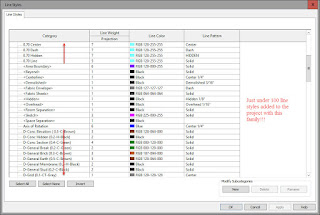 This is the same dialog after loading the family; nearly 100 more (98) line styles show up.