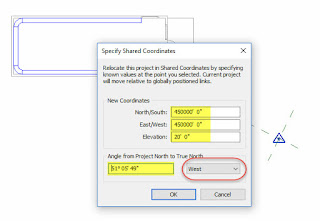 When building is moved on site trades repeat steps 2 and the rotation part of step 3. Remember to use/specify Shared Coordinates when exporting from Revit.